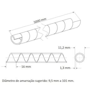 Insira o Tubo Espiral 1/2 polegadas Tramontina Branco 5 m e deixe seus espaços mais organizados e agradáveis. O tubo é flexível e proporciona facilidade no manuseio, deixando o ambiente de sua casa sem poluição visual de fios e não comprometendo sua decoração. Leve qualidade e funcionalidade para sua casa, com os itens Tramontina!Orientações.ObservaçõesA instalação e segurança: É importante que o produto seja instalado por profissional habilitado. Antes de instalar, desligue a energia elétrica.Características GeraisEAN137891435060799DUN1417891435060796NCM3926.90.90Peso Líquido0,2000 kg.Peso Bruto0,2300 kg.Metragem0,007049 m.Dimensões Embalagem (Compr. X Larg. X Alt.)265x 380x 70 mm.Dimensões Produto (Compr. X Larg. X Alt.)265x 380x 70 mm.