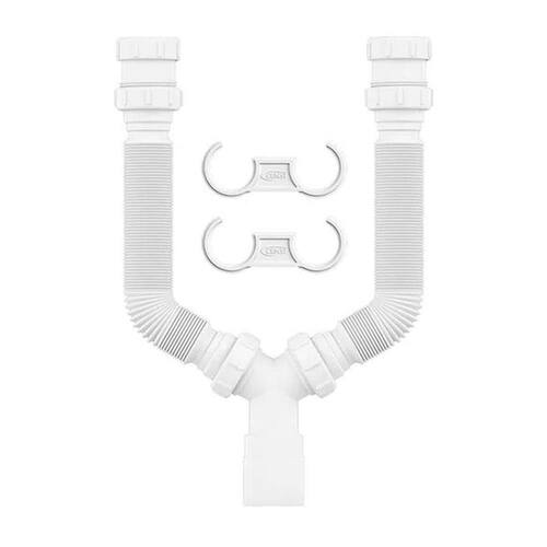 Sifão tubo extensível duplo 1,1 m branco com suportes e canopla. Ele é o responsável por conectar o ralo com a tubulação e, além de ser fundamental para o sistema de drenagem, impede que os gases e os maus odores da tubulação de esgoto voltem para dentro do ambiente.brbrcaracterísticas do produto:brbr- marca: censi;br- acabamento: branco.br- material não aderente a gordura;br- não necessita ferramentas de instalação;br- acompanha suporte para ajuste do tubo;br- conexão tipo ''y'' que evita entupimento;br- validade: indeterminada;br- : 1 ano.brbrdados técnicos e dimensões do produto: brbr- diâmetro de saída: dn 40, 48 e 50;br- comprimento aberto: 1100 mm;br- comprimento fechado: 410 mm;br- temperatura mínima: -20 c;br- temperatura máxima: 90 c;br- bucha de redução roscas 7/8'' e 1.1/4'' com vedantes;br- porca do tubo com rosca de 1.1/2'';br- aplicação: instalação de pias, lavatórios e tanques;br- composição: elastômeros e plástico de engenharia.brbr imagens meramente ilustrativas, os objetos que ambientam as imagens não acompanham o produto
