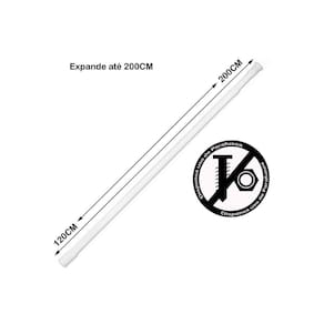 Adaptável em todas as medidas retas entre 120 e 200 centímetros. Adaptável para várias necessidades. Material: alumínio Comprimento totalmente estendido: 200cm. Comprimento totalmente fechado: 120cm. Acabamento: pintura epóxi branca Imagem meramente ilustrativa. Atenção: podem haver variações das cores de acordo com a calibragem de cada monitor em caso de devolução ou troca o produto deve ser devolvido em sua embalagem sem sinais ou marcas de uso, fora destas condições o produto será devolvido e não trocado. Ficha técnica - cor: branco Marca: Não Informado