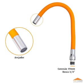 Com design sofisticado e material altamente resistente e durável, nossa linha Flexível possui movimento de 360º, Bica produzida com tubo interno em inox com revestimento de silicone Laranja e arejador fixo em latão, além de colaborar com a economia de água, confere praticidade e é extremamente funcional para a realização das tarefas diárias, é a peça ideal para sua torneira de cozinha.