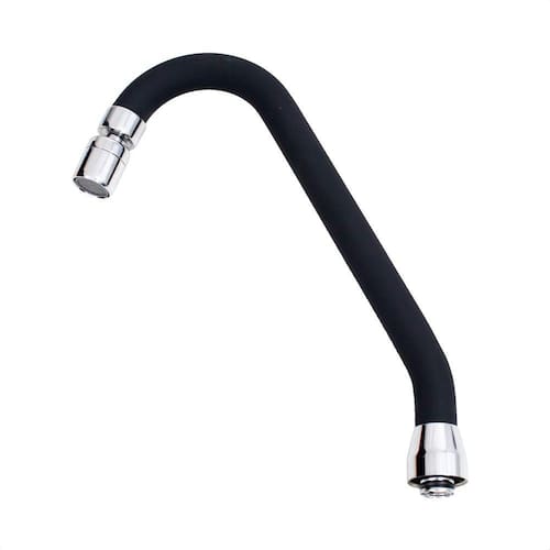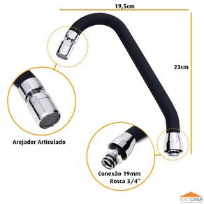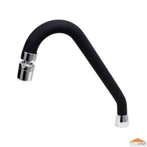 Tubo Bica Cozinha Tipo J Revestido em Silicone Preto com Arejador Articulável em Latão Cromado