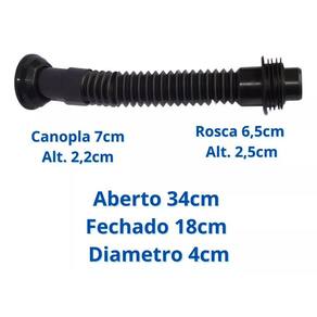 Dados Técnicos Fabricado em plástico de engenharia polipropileno PP , plástico de engenharia ABS e borracha termoplástica TPE ; Dimensões fechado: 38 mm x 150 mm; Dimensões aberto: 38 mm x 300 mm; Diâmetro: 38 mm; Embalagem: saco plástico.