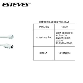 Tamanho: 50cm Cor: Branco Marca: Esteves EAN: 7891589160123 Código Fabricante: VLP316WWG Composição Básica: Plástico de Engenharia e Elastômeros Bitola: 1/2"x50cm Temperatura Máxima: Água Fria Embalagem: Saco Validade: Indeterminada