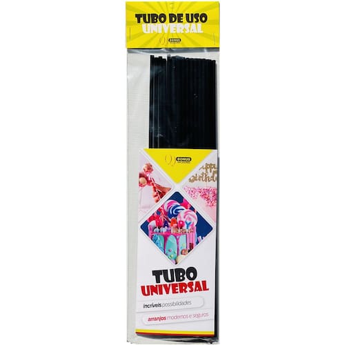 Tubo Universal Preto, feito para expandir a sua criatividade, utilizado para topo de bolos, pirulito e outras decorações de festas.