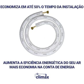 Itens inclusos: 3 metros - Tubo de Cobre flexível 1/4" já Flangeadas 3 metros - Tubo de Cobre flexível 1/2" já Flangeadas 2 porcas de 1/4" em Latão (Colocados na Tubulação) 2 porcas de 1/2" em Latão (Colocados na Tubulação 3 metros - Isolamento Térmico Blindado 1/4" 3 metros - Isolamento Térmico Blindado 1/2"