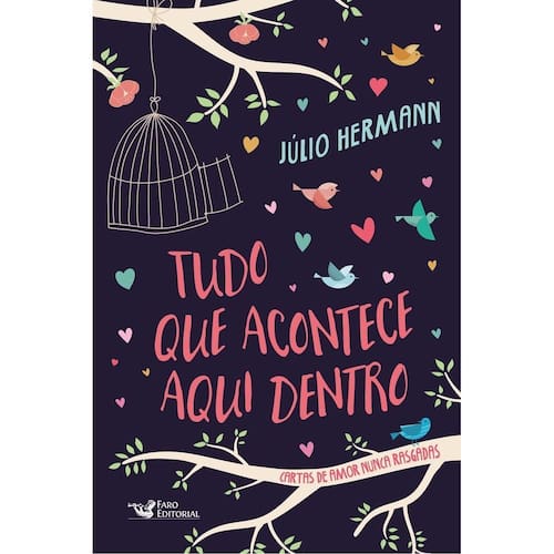 Tudo o que acontece aqui dentro é uma seleção de crônicas sobre o amor em seus diversos estágios, sobre aprender com as experiências da vida... trata-se de um tipo de testamento das coisas do coração. É também um romance narrado pelas memórias de quem as viveu, por cartas que deveriam ter sido rasgadas, registros dos sentimentos pessoais de quem revelou bem mais de si que a maioria de todos nós. “São cartas que escrevi enquanto ainda sentia a ferida arder. Os momentos felizes e os dias em que pensei que não iria aguentar”. Júlio tem um dom. Ele consegue exprimir sobre sentimentos com muita beleza e, ao compartilhar em escritos, permite que nós também possamos nomear o que muitas vezes sentimos e ficamos de algum modo aflitos, por não compreender. É o momento em que o nosso coração encontra a paz. Ele transforma o grito preso nas gargantas em literatura. São linhas que costuram o aprendizado sobre amor com o olhar de uma geração.