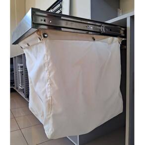 Tulha Aramada Deslizante Cesto de Roupa Suja Aço Inox Piva Fixação Superior com Saco de Tecido.