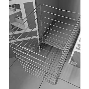 Garantia: 6 meses / Peso: 2,9kg / Cor predominante: cromado / Referência: 1020015690; Dimensões: 25,5cm (L) x 40cm (A) x 42cm (P) para vão livre de 27,5cm; Dimensões necessárias no módulo de instalação: 27,5cm (L) x 45cm (A) x 45cm (P); Capacidade: 8kg; Tipo de fixação: na base; Conteúdo: 1 tulha aramada; Material: aço carbono cromado; Obs.: acompanha corrediças telescópicas.