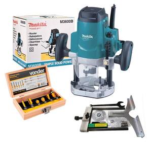 Tupia de coluna makita mt m3600b 1650w 12mm + kit com 6 fresas Ideal para trabalhos profissionais. Ajuste de profundidade. Trava da base e protetor frontal. Dupla isolação. Adaptável à coletor/aspirador de pó. Informações técnicas - potência: 1.650w - tamanho da pinça: 12mm + adaptador para 6,0 e 8,0mm. - rotações por minuto: 22.000 - capacidade de mergulho: 0 - 60mm - dimensões c x l x a : 284 x 148 x 300mm - peso: 5.5kg Itens que acompanham - guia reta - pinça 12mm + adaptador para 6,0 e 8,0mm. - chave - kit com 6 fresas. Sobre o jogo de fresas: Kit jogo fresas para tupia Composição: 06 peças Conteúdo da embalagem: -2 fresas retas 6 mm e 12 mm; -1 fresa para rasgo em v 12 mm; -1 fresa para rasgo em u 12 mm; -1 fresa rabo de andorinha 12 mm; -1 fresa com rolamento para acabamento em lâminas 12 mm. Indicado para trabalhos em madeiras e derivados. Haste diâm. X comp. :6 mm x 30 mm Marca: Não Informado