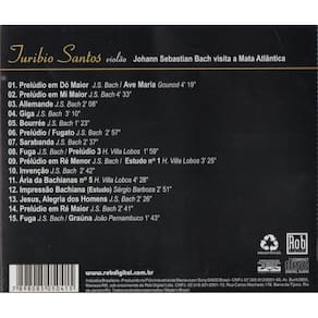 Neste CD, o violonista Turíbio Santos executa obras do compositor alemão Johann Sebastian Bach, relacionando-as com autores brasileiros, como Villa-Lobos e João Pernambuco. Segundo Turíbio, Heitor Villa-Lobos sofreu clara influência do compositor alemão, como a obra-prima Bachianas Brasileiras.Por sua vez, o próprio Villa-Lobos afirmou que Bach não teria vergonha de assinar os estudos de João Pernambuco. Esta mescla de composições é interpretada pelo som inconfundível de Turíbio, com a companhia do violão inspirado de Francisco Frias e da criativa percussão de Ricardo Costa em arranjos do próprio Turíbio, de Sérgio Barbosa e Francisco Frias. Repertório: 1 Prelúdio em Dó maior J.S. Bach / Ave Maria Gounod 2 Prelúdio em Mi maior J.S. Bach 3 Allemande J.S. Bach 4 Giga J.S. Bach 5 Bourrée J.S. Bach 6 Prelúdio / Fugato J.S. Bach 7 Sarabanda J.S. Bach 8 Fuga J.S. Bach / Prelúdio 3 H. Villa Lobos 9 Prelúdio em Ré menor J.S. Bach / Estúdo n 1 H. Villa Lobos 10 Invenção J.S. Bach 11 Ária da Bachianas n5 H. Villa Lobos 12 Impressão Bachiana Estudo Sergio Barboza 13 Jesus, Alegria dos Homens J.S. Bach 14 Prelúdio em Ré maior J.S. Bach 15 Fuga J.S. Bach / Graúna João Pernambuco Marca: Não Informado Ean: 7898085050415