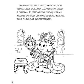 Clássicos Ilustrados para Colorir da Turma da Mônica é uma coleção pensada para unir leitura e atividade criativa no cotidiano das crianças. Com texto em letra bastão e páginas em papel apropriado para colorir e pintar, os livros incentivam o contato com contos clássicos enquanto desenvolvem a coordenação motora e a atenção. Nesta edição, a Turma da Mônica reconta o clássico A Roupa Nova do Rei. Cebolinha interpreta um rei muito vaidoso que manda confeccionar uma roupa feita com um tecido especial, invisível para aqueles que não fossem inteligentes. Encantado com a promessa dos costureiros, ele acredita estar usando o traje mais extraordinário do reino, até que uma revelação inesperada muda completamente o rumo da história. Indicado para leitura compartilhada ou atividades individuais, o livro permite que a criança leia, pinte e explore a história no próprio ritmo, combinando narrativa clássica e expressão artística.