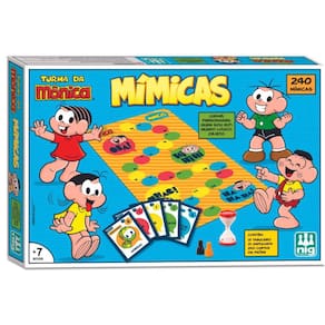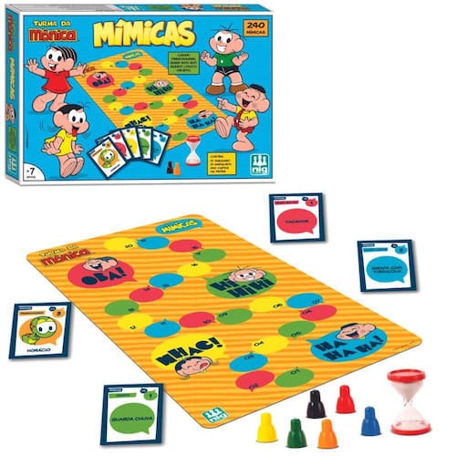 Um jogo de Mímica da Turma da Mônica muito divertido para todos! Nesta competição você estimula a criatividade das crianças, assim como a sua expressão corporal, para transmitir a mensagem, enquanto se diverte com a turminha !São 240 cartas em 5 categorias (sendo de lugar, personagem, quem sou eu, mundo louco e objeto) tudo relacionado com o Universo Turma da Mônica, acompanha uma ampulheta para marcar o tempo de cada carta e indicar os pontos que serão trilhados no tabuleiro.ESPECIFICAÇÕES:- Recomendado a partir de 7 anos- Dimensões da Embalagem (CLA): 35,5 x 5 x 24 cm- Contém: 01 Tabuleiro, 240 Cartas, 01 Ampulheta e 06 Peões- Tema: Turma da Mônica