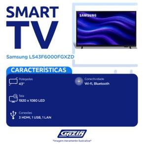 Tv 43p samsung led smart tizen wifi full hd - ls43f6000fgxzd . Cor: sem cor - voltagem: sem voltagem
