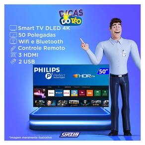 Um verdadeiro espetáculo de imagem e som em sua casa. Quer se sentir dentro de um filme ou em paisagem maravilhosa! A tecnologia 4K, te garante cores muito mais vibrantes, definidas e aprimoradas pelo processador Quad Core. E tem muito mais tecnologia para você. O HDR permite uma imagem ainda mais real e impressionante, transformando sua sala em um verdadeiro cinema. Para sua imersão total e mais diversão ela conta com uma tela super fina e muito moderna para decorar sua casa. Além disso, ela já vem com alguns aplicativos instalados como, Netflix e YouTube, para você curtir suas séries e músicas preferidas, assim que sua TV chegar. A Smart TV Philips LED 50 4K é tudo que você sonhava e muito mais.