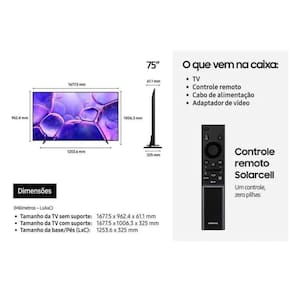 Viva uma experiencia que vai alem da tela com a nova TV Samsung 75 -- perfeita para transformar cada filme, serie ou jogo em um espetaculo inesquecivel. Sinta a emocao como se estivesse dentro da cena, mergulhe na intensidade dos momentos e descubra um novo jeito de viver o entretenimento em casa.