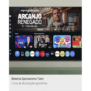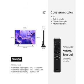 Resolução 4K UHD real, tecnologia avançada de ajuste automático de som e imagem, recursos modernos de conectividade, design sofisticado, Controle SolarCell, Painel sem bordas, Modo Ambiente, Assistente de Voz Integrado, Gaming Hub.Tamanho da tela