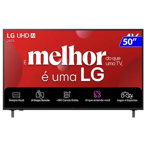 Processador a7 AI Processor 4K Gen8, Sistema webOS 25, Comando de voz integrado, HDR, Wi-Fi, Bluetooth 5.0Infelizmente não temos estoque do produto que você está procurando no momento.