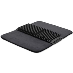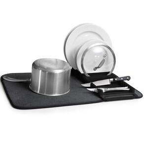 Seu design versátil combina um escorredor de pratos, porta-utensílios, suporte para talheres e tapete de secagem lavável na máquina.