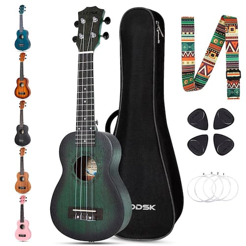 - ?Vem com todos os acessórios que você precisa?O pacote de ukulele inclui ukulele soprano, bolsa para shows, alça, afinador, 4 cordas extras de nylon, 4 palhetas, pano de limpeza e bolsa de armazenamento de acessórios. Atende a todas as necessidades dos jogadores. Esta bolsa acolchoada apresenta alças de ombro e um bolso externo para transporte confortável e boa proteção para o seu ukulele. É um presente decente para aniversários, Natal, Ação de Graças, Ano Novo e muito mais