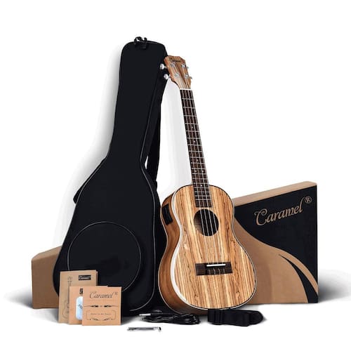 Especificações: Modelo NO: CB103 Corpo de madeira zebra Escala e ponte de nogueira Porca de osso de búfalo e sela 18 trastes Afinado como D-G-B-E Tamanho: Comprimento da escala de 50 cm. 76 cm de comprimento total do corpo Profundidade do corpo de 8 cm. 3,8 cm na porca Eletrônicos: 3 controles de equalização de banda: baixo, médio, agudos Afinador cromático com visor LCD colorido. Indicador de bateria fraca. Fonte de alimentação: 3V (CR2032) X2 A embalagem inclui: 1 Ukulele barítono de madeira zebra Caramel (com afinador) 1 x cordas adicionais 1 bolsa gig (acolchoada de 12 mm, feita de fio de poliéster 300D 6CD). 3 palhetas de guitarra. 1 pano de limpeza. 1 alça de ukulele (com pinos). 2 pinos de ponte. 1 gaveta de unhas de metal. 1 cabo equalizador. 1 manual de instruções (idioma português - Corpo exótico de madeira zebra de alto brilho – Os ukeleles barítonos Caramel CB103 de 76,2 cm são feitos de zebrawoods e bordas emolduradas por xylonita são a escolha perfeita para passeios à luz da lua na praia e fogueira, bem como um iniciador de conversa garantido em qualquer configuração de desempenho. Olhando para fora, o pescoço de mogno rende uma sustentação rica e uma experiência de jogo versátil Para uma ampla variedade de tamanhos de mão, o acabamento de alto brilho o torna mais lindo. Os ukuleles Caramel são o instrumento de escolha para ambas as profissões - Artesanato fino: Todos os ukuleles da marca Caramel são feitos à mão em vez de produzidos em massa em linhas de montagem, garantindo excelente jogabilidade. A ação da corda baixa e as bordas meticulosamente polidas, especialmente nos trastes, proporcionam uma experiência de jogo suave e confortável. Adequado para músicos iniciantes e profissionais. - Equalizador embutido: o sistema de equalização permite que você conecte seu ukulele a um amplificador, permitindo que você toque tanto em casa quanto no palco. O equalizador possui três botões de controle para ajustar frequências graves, médias e agudas. Além disso, o sistema EQ inclui um sintonizador embutido com uma tela de LED, eliminando a necessidade de um sintonizador externo separado. - Alta qualidade – Comece sua jornada de músico com um ukulele de madeira real, pare de comprar brinquedos de plástico! O ukulele barítono é maior do que os ukuleles de outros tamanhos, mais confortável para mãos maiores e preferido por músicos profissionais. Tem uma escala mais longa com mais trastes e emite um som mais profundo e cheio do que uma soprano ou concerto - D-G-B-E. Considerando que alguns não estão acostumados a afinação D-G-B-E, também damos cordas G-C-E-A livremente. - ATENDIMENTO AO CLIENTE: A equipe da Caramel tem anos de experiência no setor e está comprometida em fornecer a você um serviço e atencioso. Sinta-se à vontade para entrar em contato conosco a qualquer momento se encontrar algum problema durante o uso. Junte-se a nós agora e deixe a Caramel acompanhá-lo em sua jornada musical, criando melodias doces juntos.