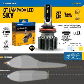 Ultra led sky tarponn - modelo h166000k 40w ip65 8.200 lumens o par-------------------------Características------------------------- Tecnologia led csp Corpo em alumínio de aviação Driver incorporado Acabamento galvanizado e cromado Dissipador de calor em alumínio de aviação 6000k Iluminação branca fria Aplicação: farol alto e farol baixo.Obs: verifique no manual do seu carro qual o modelo certo para cada possição do farol------------------------Especificações------------------------ Temperatura de cor: 6000k Potência: 40w Tensão: 12 v Fluxo luminoso: 4100 lumens/peça 8.200 o par Dissipador de calor: liga de alumínio de aviação 6063 Encaixe: h16 Grau de proteção: ip 65 Temperatura de trabalho: -40 +80c Resistência: vibrações e ao calor Linha de corte + segurança Linha: premium------------------------Itens inclusos------------------------ 01 par de lampada sky premium 40wMarca: tarponnGarantia: 12 meses pelo fabricante para defeitos de fabricação Não nos responsabilizamos por nenhum dano ocasionado pela instalação do produto por um profissional não qualificado, sendo assim de total responsabilidade do proprietárioTodas as informações divulgadas são de responsabilidade do fabricante / fornecedor.Verifique com os fabricantes do produto e de seus componentes eventuais limitações à utilização de todos os recursos e funcionalidades.