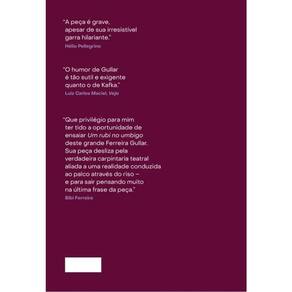 Em uma pena afiada para a prosa, o poeta Ferreira Gullar cria, com Um rubi no umbigo , uma tragicomédia de “humor selvagem e revoltado” Este Um rubi no umbigo , de Ferreira Gullar, é uma comédia à brasileira. Tudo começa na casa de uma família de classe média, onde vivem o casal Everaldo e Doca, e o filho, Vítor. Um lar bastante comum, se não fosse por uma circunstância curiosa: Vítor, um jovem de vinte anos, tem um rubi costurado no umbigo – o único meio que sua falecida avó encontrou para salvá-lo de uma morte prematura. Quando a família se viu afundada em dívidas, o pai, Everaldo, encontrou uma solução simples para os problemas: retirar o rubi do umbigo do filho para pagar os débitos. Inspirada em uma notícia de jornal, esta peça de Gullar, escrita em 1970, foi publicada somente em 1978, poucos anos após seu retorno do exílio imposto pela ditadura civil-militar. A primeira montagem, encenada no ano seguinte, contou com a direção de Bibi Ferreira e importantes nomes da dramaturgia, como Roberto Fróes, Osmar Prado e Ana Lúcia Torre. Sucesso de crítica, Um rubi no umbigo apresenta muitas dimensões interpretativas, entre elas, a política, a social e a psicanalítica – esta última muito bem abordada pelo poeta e teórico Hélio Pellegrino, em texto de 1979, aqui incluído integralmente. Esta edição, além de retomar o texto de 1978, inclui: a reprodução fac-similar das emendas feitas à mão pelo autor em um exemplar da primeira edição; a publicação do texto final da peça, reescrito por Gullar após assistir à montagem de Bibi Ferreira; o recorte de uma reportagem sobre o caso do homem que tinha um rubi no umbigo; algumas imagens do programa da montagem de 1979 e fotos da mais recente, de 2011; e textos que aproximam o público do debate crítico acerca da peça. O projeto gráfico, assinado pelo artista visual Gustavo Piqueira, é inspirado na edição de 1978 projetada por Eugênio Hirsch. “A peça é grave, apesar de sua irresistível garra hilariante.” – Hélio Pellegrino “O humor de Gullar é tão sutil e exigente quanto o de Kafka.” – Luiz Carlos Maciel, Veja “Que privilégio para mim ter tido a oportunidade de ensaiar Um rubi no umbigo deste grande Ferreira Gullar. Sua peça desliza pela verdadeira carpintaria teatral aliada a uma realidade conduzida ao palco através do riso.” – Bibi Ferreira