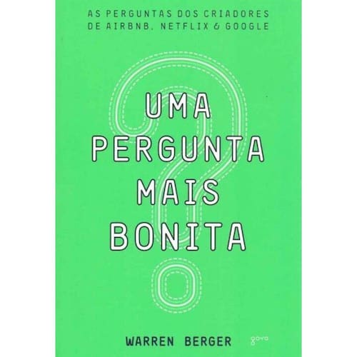 Uma Pergunta mais Bonita procura definir um sistema prático de questionamento, um processo inovador que ajude a alcançar respostas imaginativas e poderosas. Para isso, leva o leitor ao coração de empresas como Google, Netflix, IDEO e Airbnb, pioneiras em suas áreas de atuação e grandes líderes do mercado atual, e mostra como o questionamento faz parte do DNA organizacional desses conglomerados formadores de tendências. Warren Berger, jornalista e especialista em inovação, também procura compartilhar as mais diversas e inspiradoras histórias de vida e de carreira, contadas por grandes artistas, professores, empresários e ativistas sociais, pessoas que mudaram não apenas suas vidas, mas também o mundo à volta tudo começando com uma pergunta bem-feita.