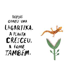 Conheça uma planta com uma fome sem fim, que fica maior a cada página — e a cada refeição! Num certo dia de sol, uma planta carnívora nasceu. Ela era pequena e delicada, e estava com muita fome. Então passou a engolir todo tipo de criatura: lagarta, borboleta, coelho, vaca paraquedista, mamute voador… Quanto mais a planta comia, maior ficava, e nada nem ninguém parecia capaz de detê-la. Será mesmo? Neste livro ilustrado, o artista Renato Moriconi cria uma planta tão cheia de fome quanto a lagarta de Eric Carle, com uma narrativa visual que vai fisgar os pequenos leitores. Este livro é indicado para crianças a partir de 4 anos.