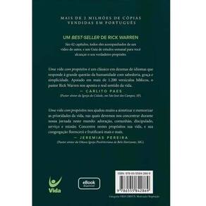 São 42 capítulos, todos eles acompanhados de um vídeo do autor, e um Guia de estudos semanal para você alcançar o seu verdadeiro propósito. Uma vida com propósitos é um clássico em dezenas de idiomas que responde à grande questão da humanidade com sabedoria, graça e simplicidade. Apoiado em mais de 1.200 versículos bíblicos, o pastor Rick Warren nos aponta o real sentido da vida. ?CARLITO PAES (Pastor sênior da Igreja da Cidade, em São José dos Campos, SP). Uma vida com propósitos nos ajudou muito a sintetizar e memorizar as prioridades da vida, nas quais devemos nos concentrar durante nossa jornada neste mundo: adoração, comunhão, discipulado, serviço e missão. Concentre nestes propósitos sua vida, e sua congregação florescerá e frutificará mais e mais. ? JEREMIAS PEREIRA (Pastor sênior da Oitava Igreja Presbiteriana de Belo Horizonte, MG)