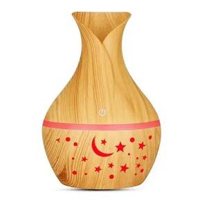 Umidificador aromatizador ultrasonico tulipa estrelada madeira clara usb com led colorida