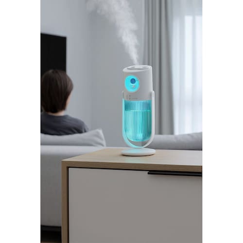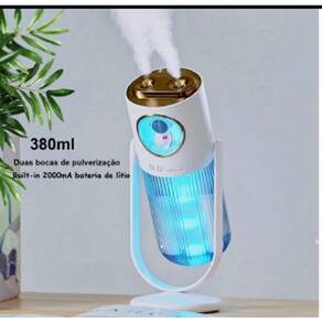 Umidificador De Ar - UM007-02 Umidificador de ar reUMIDIFICADOR DE AR RECARREGÁVEL USB PORTÁTVEL E SILENCIOSO\nUmidifique o ambiente com praticidade e conforto em qualquer lugar Possui design moderno sem fio e portátil com liberação de nano névoa delicada que melhora rapidamente a qualidade do ar ajudando a reduzir o ressecamento do ambiente tosse seca e desconfortos respiratórios\nBateria recarregável de alta capacidade que permite uso sem fios e com movimento livre de 360 graus ideal para quarto escritório carro viagens acampamentos e uso diário\nSistema de névoa ultrafina acionado com apenas um toque garantindo umidificação eficiente e uniforme\nFuncionamento ultra silencioso ideal para uso noturno sem interferir no sono\nDesign estável com formato 360 graus e base antiderrapante proporcionando mais segurança\nConteúdo da embalagem Umidificador de ar 1 unidade Cabo USB tipo C 1 unidade Manual do usuário 1 unidade\nEspecificações do produto Material ABS e PP Entrada DC 5V 1A Volume de pulverização 20 a 40 ml por hora Interface USB tipo C carregável USB portátil e silencioso com nano névoa ultrafina ideal para quarto escritório carro melhora o ar e reduz ressecamento Marca: Não Informado