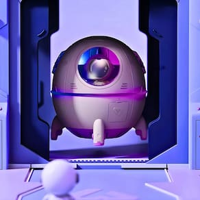 Umidificador de Ar Portátil Cápsula Espacial com Luminária LED e Conexão USB O Umidificador Cápsula Espacial une funcionalidade e design moderno, sendo uma solução eficiente para a umidificação de ambientes pequenos como quartos, escritórios e veículos. Com tecnologia de atomização ultrassônica, o dispositivo melhora a qualidade do ar enquanto atua como uma luminária decorativa com projeção de cores quentes.