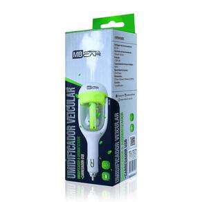 Umidificador Purificador Aroma Carro Veicular + USB 12v O umidificador veicular, aumenta a umidade do ar e se for de sua preferência adicione gotas de essencia a base de água para perfumar dentro do seu veiculo. Indicado para ser Utilizado Quando o ar condicionado estiver ligado para evitar o ar seco. Funciona diretamente no acendedor 12v. Instruções: 1 Gire para abrir o recepiente 2 Encha com água 3 Feche o recepiente até o final 4 Encaixe no local adequado: Plugue 12v 5 Aperte o botão para ligar o aparelho Caracteristicas: - Voltagem de funcionamento: 12V - Corrente de funcionamento: 130Ma 150Ma - Energia: 1,5 W 2W - Capacidade do tanque de água: 50ml - Quantidade de Spray: 25ml/h - Quantidade: 1 un Disponível em 4 modelos de cores. Modelo enviado de acordo com a disponibilidade do . Marca: Não Informado