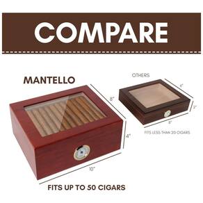 Feito à mão com a melhor madeira genuína de cedro espanhol, este humidor tem capacidade para 25-50 charutos, acabamento rico, tampa de vidro e design elegante. Acompanha um umidificador, higrômetro e um divisor móvel para organizar seus charutos. Este umidor de alta qualidade inclui um suave protetor de veludo preto na base, evitando danos por atrito. Um presente ideal para amantes de charutos, perfeito para pais, maridos e amigos. Indicado para armazenar charutos em casa, em viagens ou no escritório. Para melhores resultados, mantenha seu umidor de charutos em um ambiente fresco.