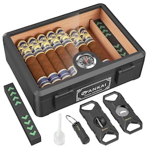 O Humidificador de Charutos com Topo em Vidro da FANKAI é feito com material ABS de alta qualidade, combinando elegância atemporal com funcionalidade contemporânea. A tampa de vidro transparente oferece visibilidade em tempo real dos seus charutos, sem comprometer o clima interno. Com dimensões de 23 x 17 x 7 cm e peso de 798 g, esta compacta caixa de charutos é uma adição elegante e econômica para a decoração da sua mesa. Feito de cedro espanhol de alta qualidade, este umidificador premium é hermeticamente projetado com tecnologia avançada de vedação para controlar a umidade de forma ideal, preservando a frescura, sabor e aroma dos seus charutos. Equipado com um umidificador compacto, higrômetro mecânico e divisor versátil, este umidor é o companheiro ideal para os apreciadores de charutos. Com capacidade generosa para até 2025 charutos, este umidor é o presente perfeito para os amantes de charutos em ocasiões especiais.