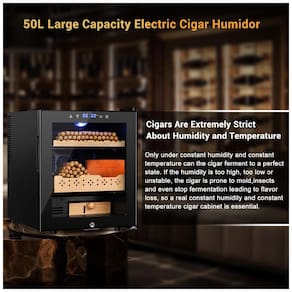 Com elegância e capacidade ampla de 50 litros para até 300 charutos, este umidor elétrico de mesa é a solução definitiva para armazenar sua coleção robusta. Tenha controle preciso com configurações de temperatura e umidade controladas por toque, mantendo climas internos entre 15-22°C e níveis de umidade de 60 a 75. Experimente a potência da tecnologia de refrigeração de semicondutores em nosso umidor elétrico, garantindo operação silenciosa, eficiência ecológica e preservação ideal de sua coleção de charutos. Aproveite o sistema de resfriamento de ar que facilita a circulação natural, evitando discrepâncias de temperatura e protegendo contra o mofo local, preservando a integridade de suas coleções. Projetado para conhecedores, desfrute da funcionalidade contínua do nosso umidor elétrico, com tela LED digital, trava de segurança e prateleiras de cedro espanhol, unindo sofisticação e funcionalidade para o aficionado moderno.
