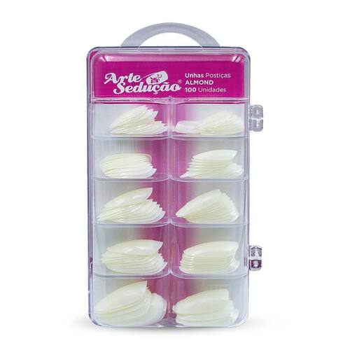 01 - Caixa Acrílica com 100 Unidades de Unhas Postiças Formato Almond Amendoadas