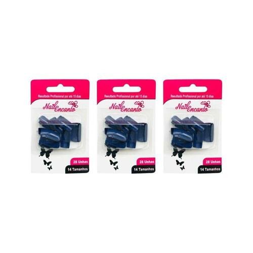 Unhas Postiças Fhaces Nail Encanto Colors Azul Com 28Un- 3Un