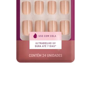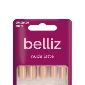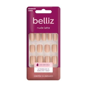 Unhas Postiças Nude Latte Belliz Quadrado Curto Ultra Brilho 24 Unidades
