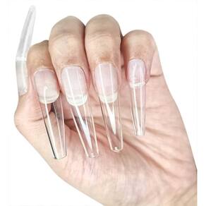 Tips extra longa bailarina transparente 100 unidades + estojo organizador. Tips para alongamento em gel acrigel,acrílico,banho em gel... produto em ótima qualidade. Estas unhas são confeccionadas com plástico abs, um material próprio para unhas postiças. Ele permite que você corte, lixe e esmalte, sem danificar as unhas.