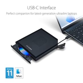 Unidade e gravador de DVD externos ASUS ZenDrive V1M com design embutido de armazenamento por cabo, interface USB-C, compatível com Win 11 e macOS, suporte M-DISC (SDRW-08V1M-U) - Armazenamento conveniente de cabos: não há mais perdas com um cabo de conexão embutido de 24 cm. - Interface USB-C: companheira perfeita para laptops ultrafinos de última geração. - Suporte M-DISC: armazene suas preciosas fotos, vídeos e dados por até 1.000 anos. - Windows ou macOS: suporte multiplataforma para ampla compatibilidade. - Arraste e grave: crie um disco em apenas três etapas, por meio de uma interface intuitiva. (Somente Windows) - Criptografia de disco: proteção de dados sem complicações por meio de controle de senha e funções de pasta oculta. (Somente Windows) - Software de backup incluído: o Nero BackItUp permite o arquivamento fácil de fotos, vídeos ou dados. (Somente Windows) - O que vem na caixa: ZenDrive V1M, software de CD, guia de instalação