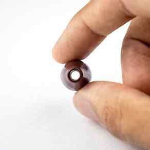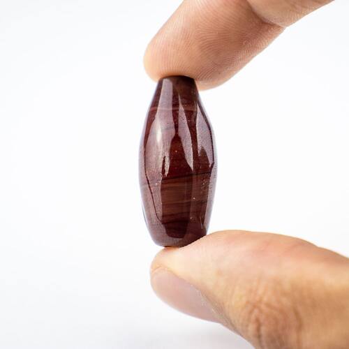 Composição: 100% vidro Formato de "azeitona" com furo passante no meio Dimensões da peça aproximada: 3,5 cm X 1,5 cm