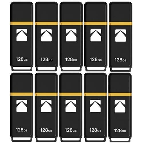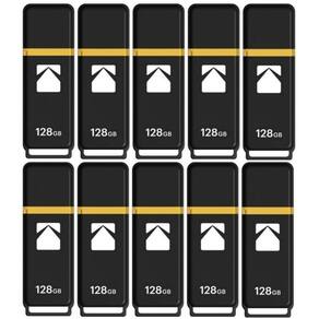 Unidade flash Kodak Classic K100 Cap and Body Series USB 3.2 Gen 1 de 128 GB com velocidade de leitura de até 20 MB/s e velocidade de gravação de até 10 MB/s (pacote com 10)