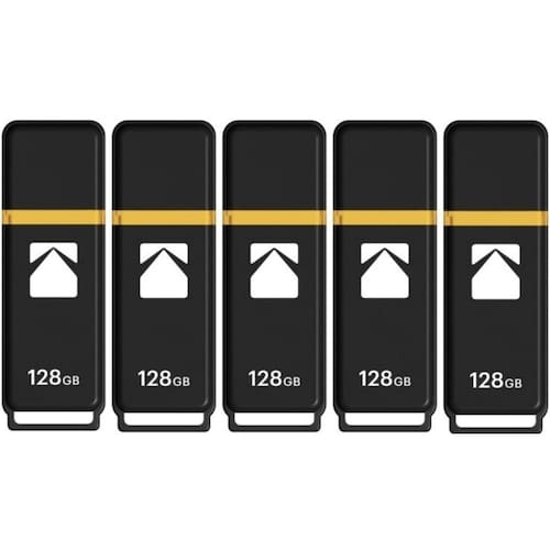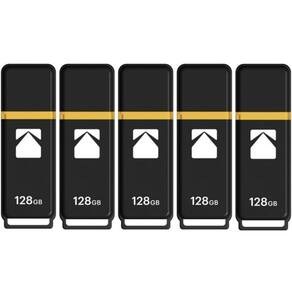 Unidade flash Kodak Classic K100 Cap and Body Series USB 3.2 Gen 1 de 128 GB com velocidade de leitura de até 20 MB por segundo e velocidade de gravação de até 10 MB por segundo (pacote com 5)