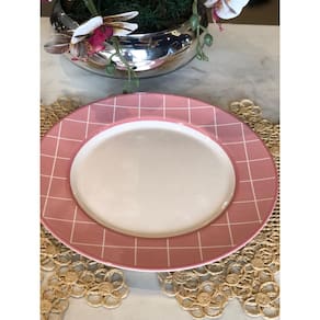 O prato raso da coleção Laços de Páscoa Rosa, frequentemente da marca Alleanza, é uma peça de cerâmica de alta resistência com aproximadamente 29 cm de diâmetro. Com estampa delicada em tons suaves de rosa e branco, é ideal para compor mesas postas de Páscoa ou ocasiões românticas, apresentando design moderno.
