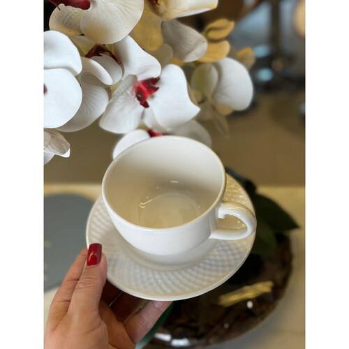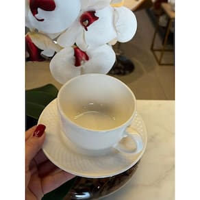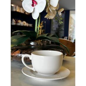 Tipo de embalagem: Caixa parda. Contendo 1 xícara e 1 pires de chá de 250 ml Garantia:90 dias por defeito de fabricação e 1 ano para gretamento.