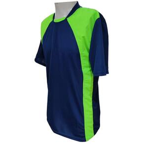 Nome: Uniforme 20+1 Camisa Azul Marinho/Verde Limão, Calção Marinho e Goleiro