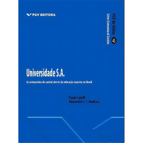 Título Do Livro: Universidade s.a.: as companhias de capital aberto da educação superior no Brasil Autor: Caleffi Paula Idioma: Português Editora Do Livro: Editora FGV Capa Do Livro: Mole Com íNdice: Sim Quantidade De Páginas: 100 Altura: 17 cm Largura: 12 cm Peso: 0.15 kg Material Da Capa Do Livro: Outros Gênero Do Livro: Negócios, finanças e economia Tipo De Narração: Conto Idade Mínima Recomendada: 18 anos Data De Publicação: 16-08-2017 Ano De Publicação: 2017 Marca: Não Informado