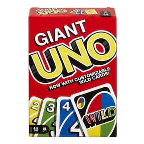 UNO Gigante é a versão ampliada do clássico jogo de cartas, ideal para a praia ou piscina As regras continuam as mesmas: os jogadores tentam se livrar das cartas combinando com a da pilha de descarte e, ao restar apenas uma carta, devem gritar UNO! em grande estilo