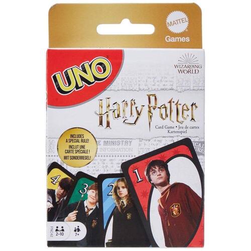 Descrição do produtoUno harry potterMais informaçõesMarca: mattelDescrição completaÉ o divertido e rápido jogo de cartas que você adora agora com personagens icônicos do mundo de harry potter junte-se a harry, hermione, ron, professor dumbledore e mais de seus personagens favoritos de hogwarts para uma noite de jogo uno. Os jogadores correm para se livrar de todas as suas cartas combinando uma carta em sua mão com a carta atual mostrada no topo do baralho. Marque pontos sendo o primeiro a se livrar de todas as cartas da sua mão. Cartas de ação especiais oferecem momentos de mudança de jogo, pois cada uma executa uma função para ajudá-lo a derrotar seus oponentes. Existe até uma carta especial de regras do chapéu seletor quando você joga esta carta, outro jogador de sua escolha deve continuar comprando cartas até encontrar uma carta da grifinória outras cartas de ação incluem skips, reverses, draw two e wild cards. Primeiro jogador ou time a 500 vitórias - e quando você tiver uma carta, não se esqueça de gritar uno um ótimo presente para fãs de harry potter, com 7 anos ou mais. Contém 112 cartões mais instruções. Para 2 a 10 jogadores com idade igual ou superior a 7 anos. As cores e decorações podem variar.Agradecemos a sua visitaHomologação Inmetro: CE-BRI/IQB 005923 53892/20-052
